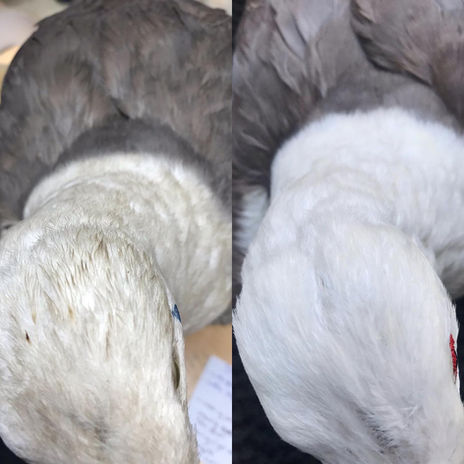 This seagull needed some well overdue TLC. You can see in the before amd after shots how well this guy came out after a good clean. I also added eye rings and fixed his boots so they're in the right position.