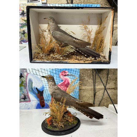 An unusual example of a Victorian Cuckoo was in dire need of some cleaning, a new set of eyes and a remount. The specimen wasn't in the greatest of conditions as there was fat burn on the skin (due to poor processing) so the restoration was limited. However, after a clean, new set of eyes fitted and re-mounted on a new base to go with the rest of the John Moore Museum collection. It shows a bird that unfortunately is a rare sight to see in the 21st century.