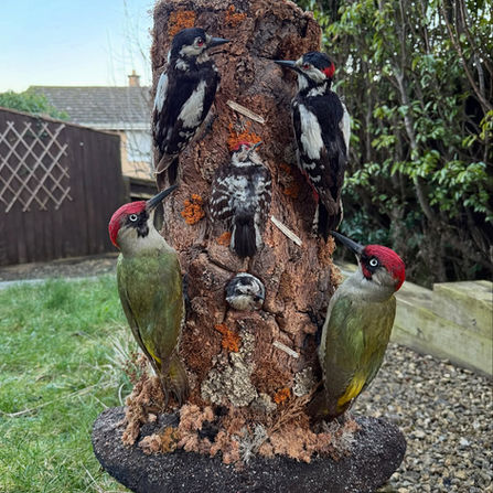 An unusual example of a collection of UK native woodpeckers. They needed to be remounted onto a more suitable base and a good cleaning with some paintwork restoration done to the beak and feet. You can also spot the now rare lesser spotted woodpeckers (middle). There's an example of a male and female in the photos.